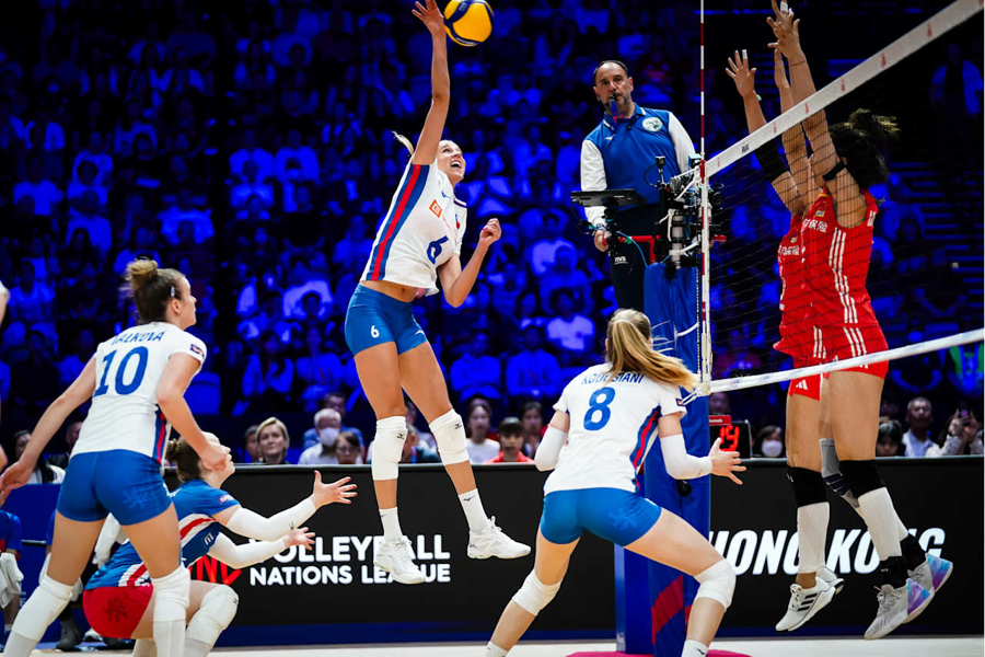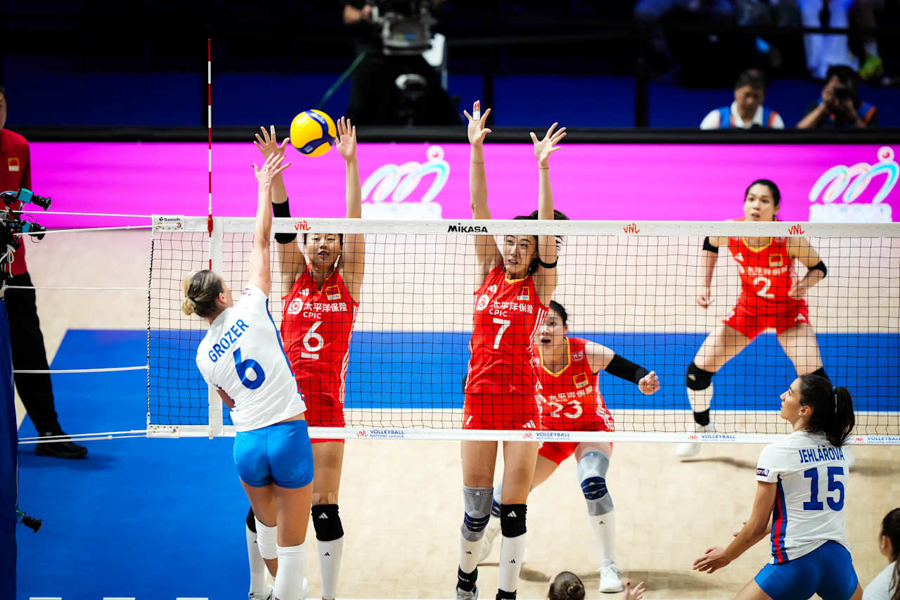 作为首次登上世界女排联赛舞台的“菜鸟”队伍,捷克女排在首周比赛就展现出超强的冲击力,尤其是对阵美国女排的比赛堪称经典一战。在大比分0比2落后的绝境下,捷克女排连扳三局,决胜局更是挽救10个赛点,以3比2逆转战胜美国女排。本场面对中国女排,捷克女排依旧延续了首周的火热状态和顽强斗志。